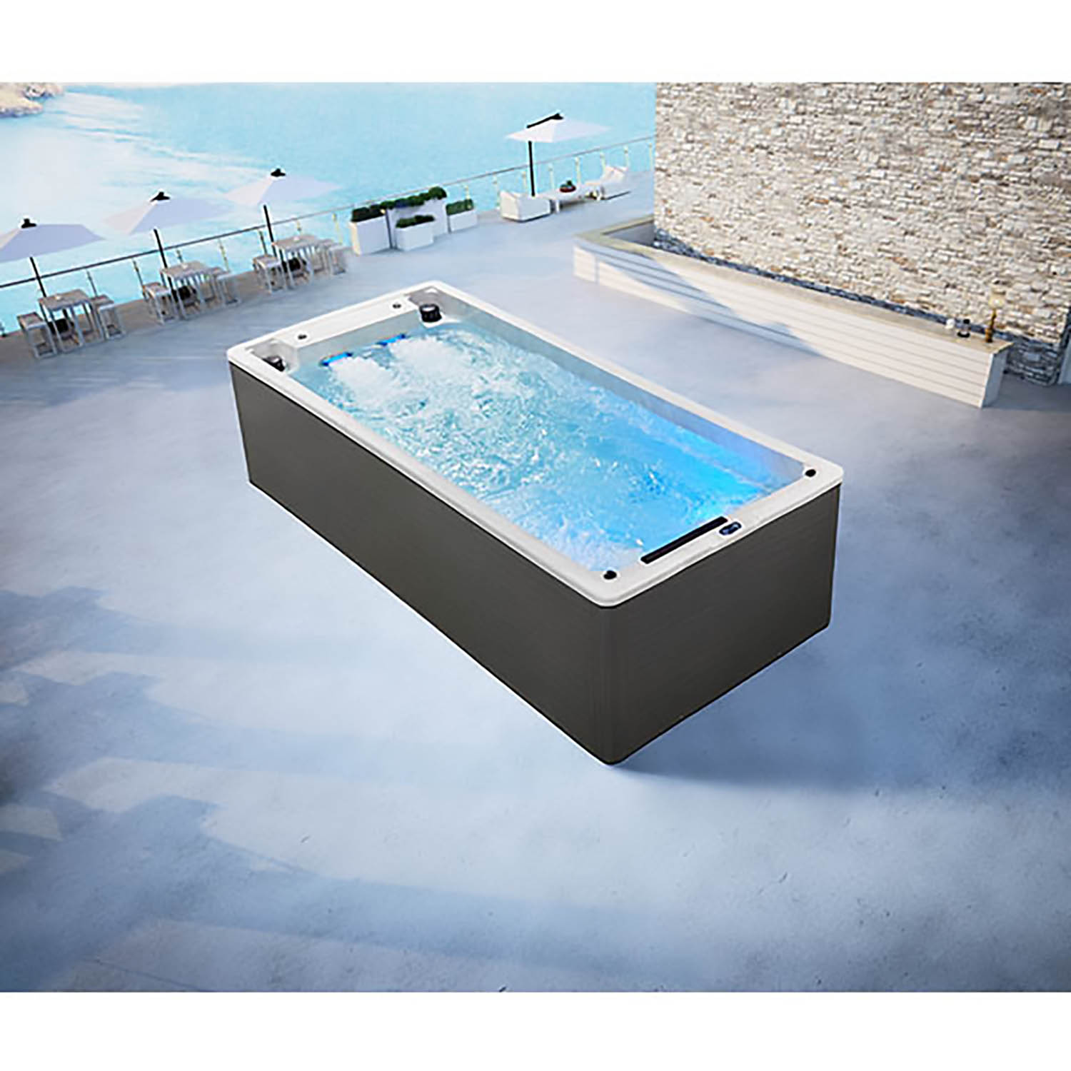 Данная модель бассейна компании Mexda имеет современное техническое оснащение, подходящее для наружной установки.