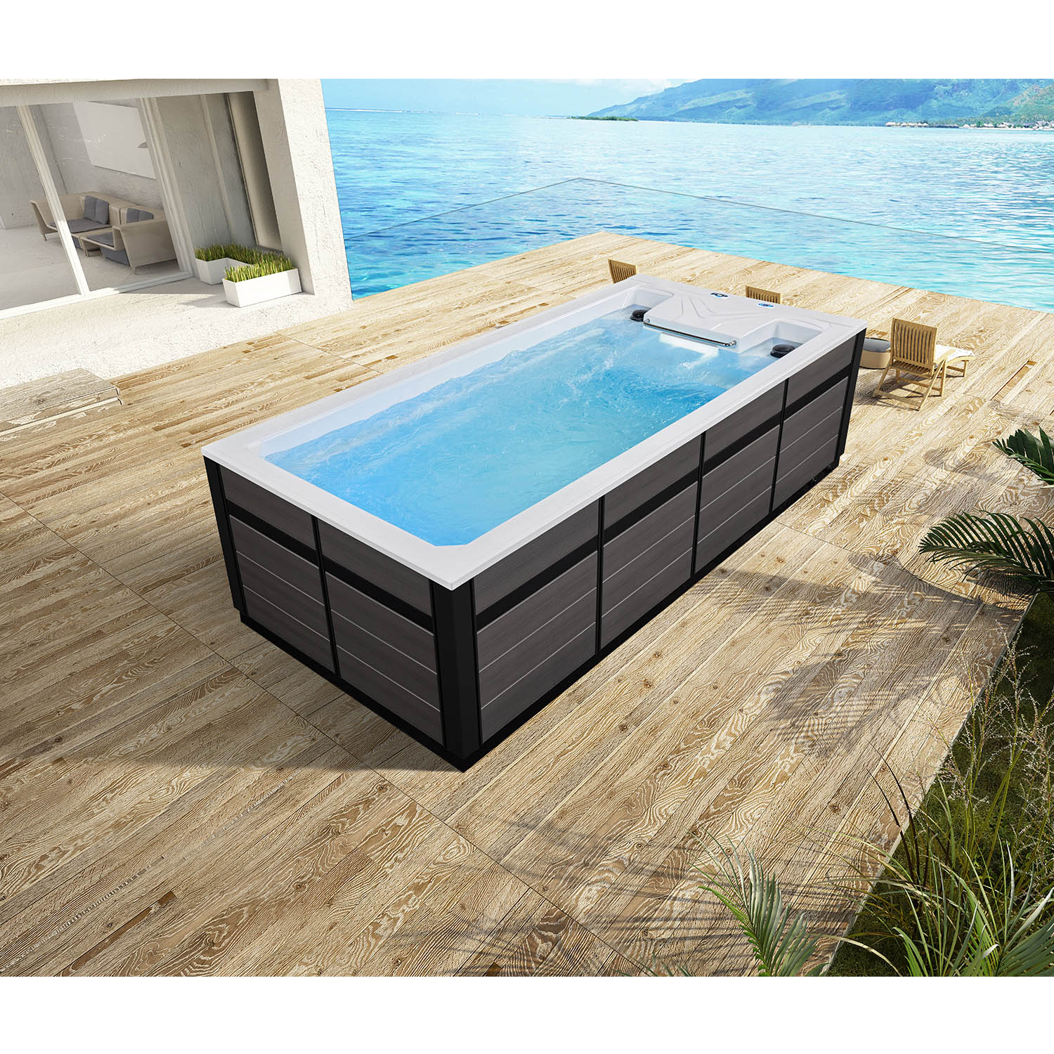 Данная модель бассейна компании Mexda имеет современное техническое оснащение, подходящее для наружной установки.